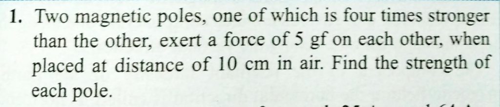 Two magnetic poles, one of which is four times stronger than the other , exert a force of 5 gf on each other , when placed at distance of 10 cm in air. Find the strength of each pole. exert a force of 5 gf on each other one of which is four times stronger than the other Two magnetic poles when placed at distance of 10 cm in air. Find the strength of each pole. October 18, 2020 Category: Uncategorised (JEE Advanced Physics by BM Sharma + GMP Solutions) , Facebook Messenger WhatsApp Share this:TwitterFacebook Related