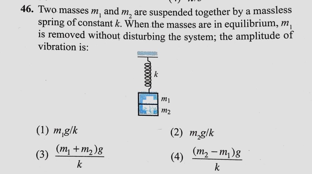 Two masses m1 and m2 are suspended together by a massless spring of constant k. When the masses are in equilibrium, m1 is removed without disturbing the system; the amplitude m1 is removed without disturbing the system; the amplitude Two masses m1 and m2 are suspended together by a massless spring of constant k. When the masses are in equilibrium October 31, 2020 Category: Uncategorised (JEE Advanced Physics by BM Sharma + GMP Solutions) , Facebook Messenger WhatsApp Share this:TwitterFacebook Related