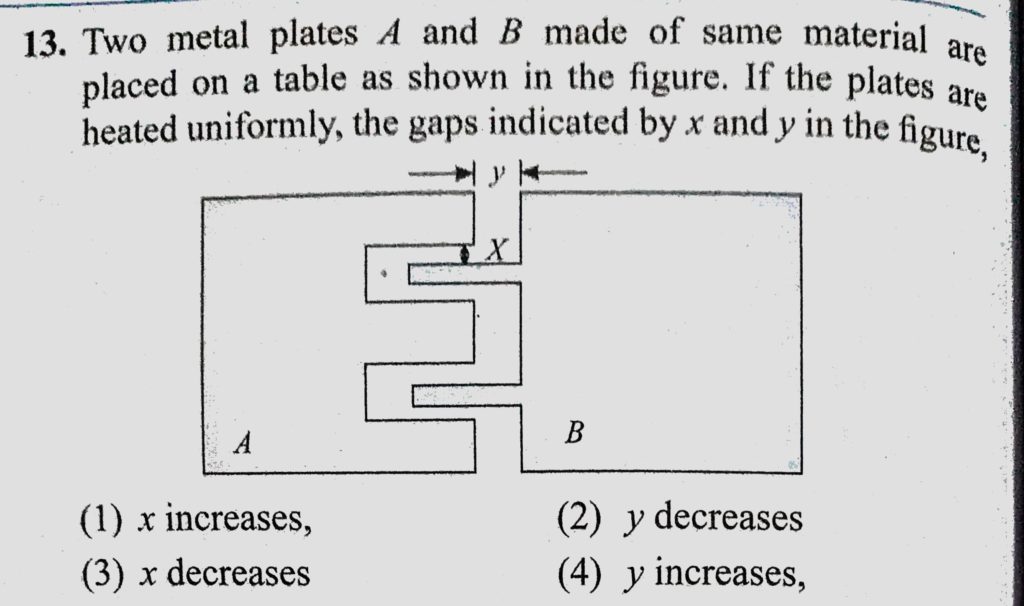 Two metal plates A and B made of same material are placed on a table as shown in the figure. If the plates are heated uniformly, the gaps indicated by x and y in the figure, the gaps indicated by x and y in the figure Two metal plates A and B made of same material are placed on a table as shown in the figure. If the plates are heated uniformly October 24, 2020 Category: Uncategorised (JEE Advanced Physics by BM Sharma + GMP Solutions) , Facebook Messenger WhatsApp Share this:TwitterFacebook Related