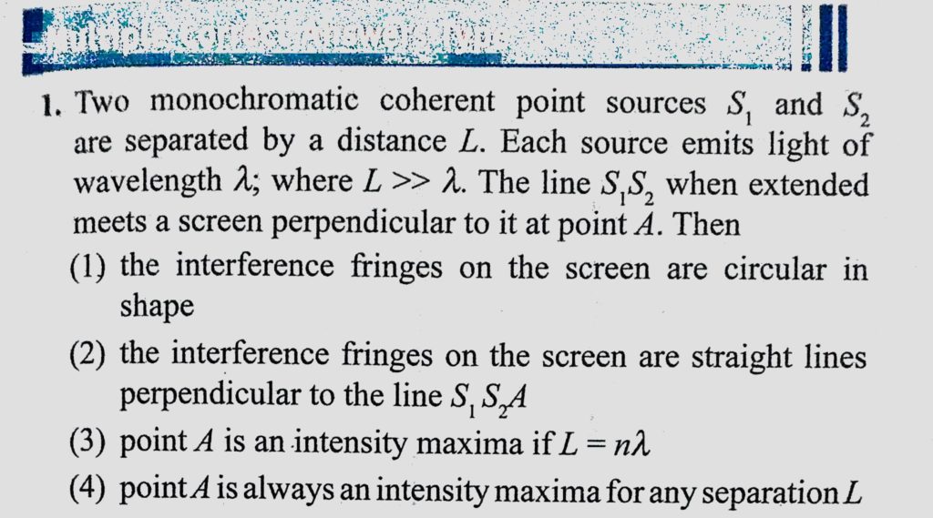 Two monochromatic coherent point sources S1 and S2 are separated by a distance L. Each source emits light of wavelength lemda; where L >> lemda. The line S1S2 when extended meets a Two monochromatic coherent point sources S1 and S2 are separated by a distance L. Each source emits light of wavelength lemda; where L >> lemda. The line S1S2 when extended meets a October 11, 2020 Category: Uncategorised (JEE Advanced Physics by BM Sharma + GMP Solutions) , Facebook Messenger WhatsApp Share this:TwitterFacebook Related