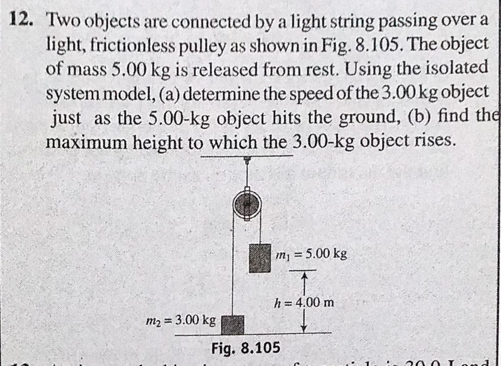 Two objects are connected by a light string passing over a light, frictionless pulley as shown in Fig. 8.105. The object of mass 5.00 kg is released from rest. Using the isolated system model, frictionless pulley as shown in Fig. 8.105. The object of mass 5.00 kg is released from rest. Using the isolated system model Two objects are connected by a light string passing over a light October 2, 2020 Category: Uncategorised (JEE Advanced Physics by BM Sharma + GMP Solutions) , Facebook Messenger WhatsApp Share this:TwitterFacebook Related