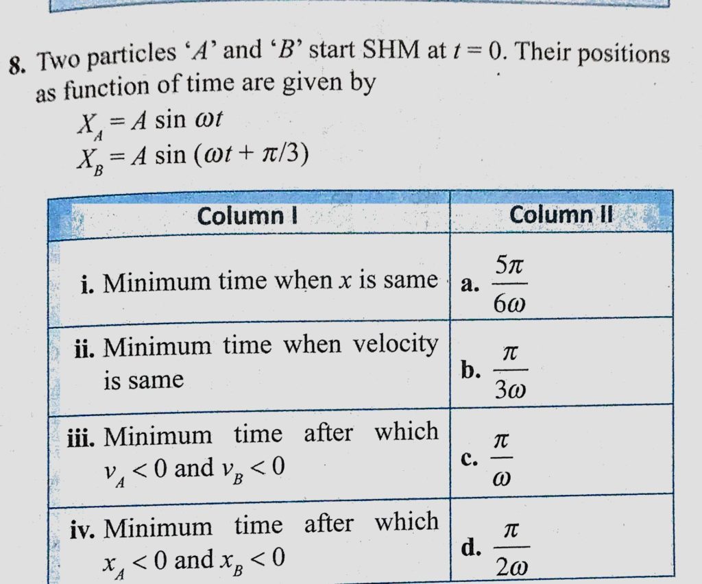 Two particles ‘A’ and ‘B’ start SHM at t = 0. Their positions as function of time are given by XA = A sin omega t XB = A sin (omega t + pie/3) Two particles 'A' and 'B' start SHM at t = 0. Their positions as function of time are given by XA = A sin omega t XB = A sin (omega t + pie/3) October 31, 2020 Category: Uncategorised (JEE Advanced Physics by BM Sharma + GMP Solutions) , Facebook Messenger WhatsApp Share this:TwitterFacebook Related