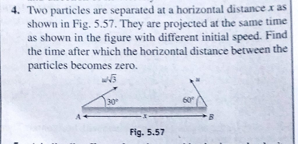 Two particles are separated at a horizontal distance x as shown in Fig. 5.57. They are projected at the same time as shown in the figure with different initial speed. Find the time after which the horizontal distance both the balls stay in our view for the same period. Pankaj and Sudhir are playing with two different balls of masses m and 2m respectively. If Pankaj throws his ball vertically up and Sudhir at an angle theta September 21, 2020 Category: Uncategorised (JEE Advanced Physics by BM Sharma + GMP Solutions) , Facebook Messenger WhatsApp Share this:TwitterFacebook Related