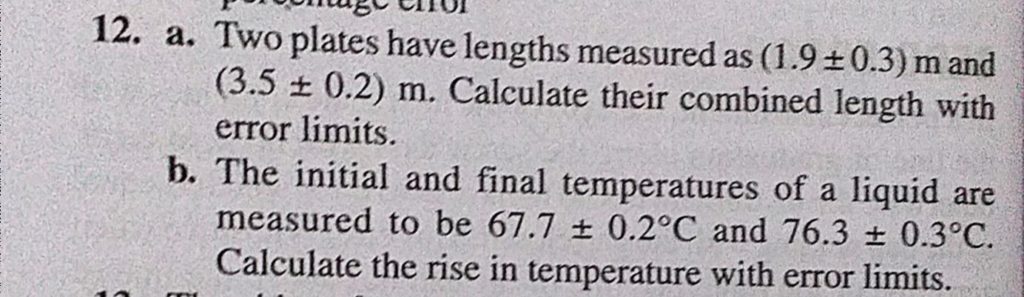 a. Two plates have lengths measured as (1.9 + – 0.3)m and (3.5 +- 0.2) m. Calculate their combined length with error limits. b. The initial and final temperatures of a liquid are measured to be a. Two plates have lengths measured as (1.9 + - 0.3)m and (3.5 +- 0.2) m. Calculate their combined length with error limits. b. The initial and final temperatures of a liquid are measured to be September 14, 2020 Category: Uncategorised (JEE Advanced Physics by BM Sharma + GMP Solutions) , Facebook Messenger WhatsApp Share this:TwitterFacebook Related