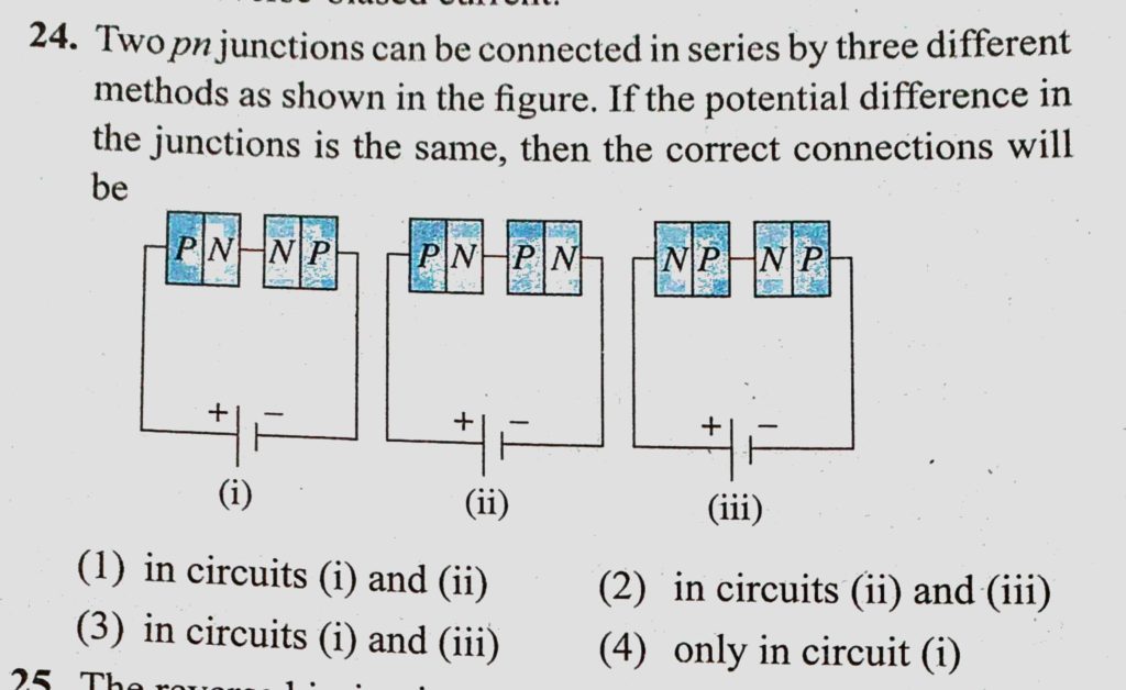Two pn junctions can be connected in series by three different methods as shown in the figure. If the potential difference in the junctions is the same, then the correct connections will be then the correct connections will be Two pn junctions can be connected in series by three different methods as shown in the figure. If the potential difference in the junctions is the same October 21, 2020 Category: Uncategorised (JEE Advanced Physics by BM Sharma + GMP Solutions) , Facebook Messenger WhatsApp Share this:TwitterFacebook Related