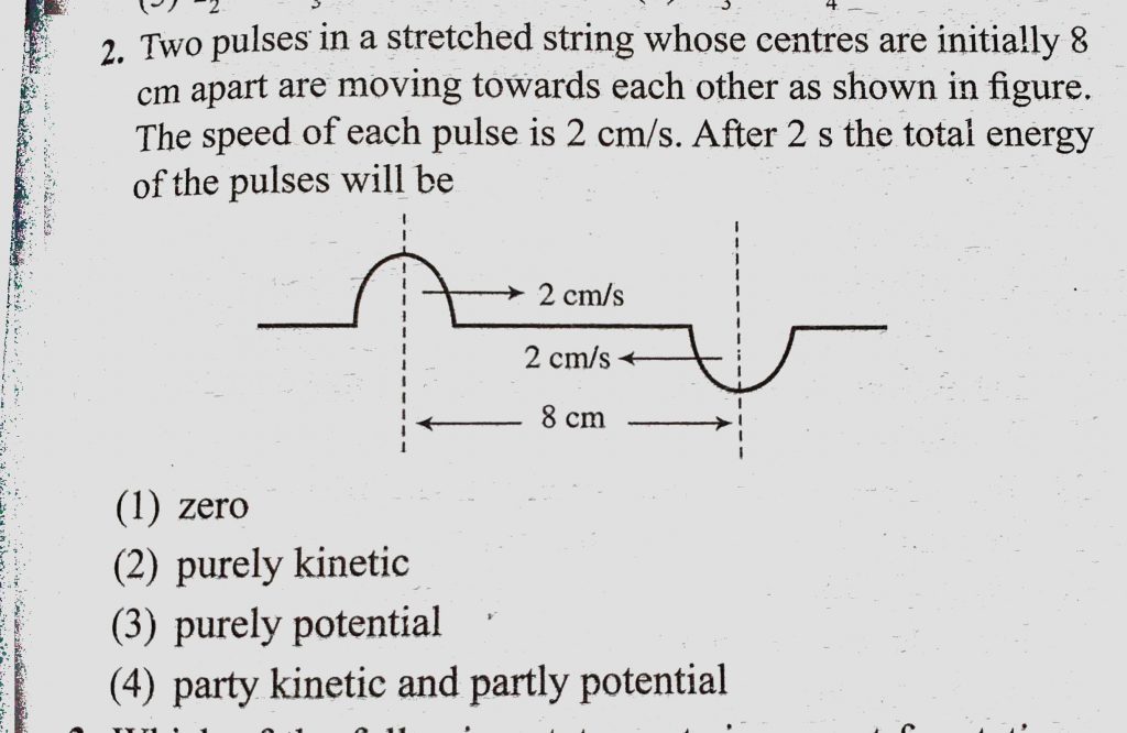 Two pulses in a stretched string whose centres are initially 8 cm apart are moving towards each other as shown in figure. The speed of each pulse is 2 cm/s. After 2s the total energy Two pulses in a stretched string whose centres are initially 8 cm apart are moving towards each other as shown in figure. The speed of each pulse is 2 cm/s. After 2s the total energy November 5, 2020 Category: Uncategorised (JEE Advanced Physics by BM Sharma + GMP Solutions) , Facebook Messenger WhatsApp Share this:TwitterFacebook Related