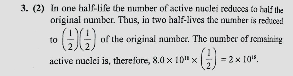 A radioactive sample has 8.0 * 10^18 active nuclei at a certain instant. How many of these nuclei will still be in the active state after two half-lives (in * 10^18)? A radioactive sample has 8.0 * 10^18 active nuclei at a certain instant. How many of these nuclei will still be in the active state after two half-lives (in * 10^18)? October 20, 2020 Category: Uncategorised (JEE Advanced Physics by BM Sharma + GMP Solutions) , Facebook Messenger WhatsApp Share this:TwitterFacebook Related