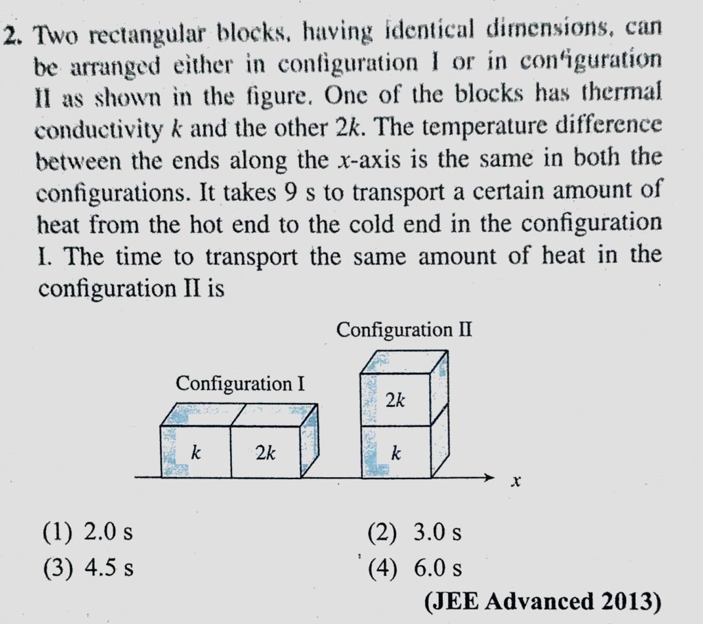 Two rectangular blocks, having identical dimensions, can be arranged either in configuration 1 or in configuration 2 as shown in the figure. One of the blocks has thermal conductivity k can be arranged either in configuration 1 or in configuration 2 as shown in the figure. One of the blocks has thermal conductivity k having identical dimensions Two rectangular blocks October 27, 2020 Category: Uncategorised (JEE Advanced Physics by BM Sharma + GMP Solutions) , Facebook Messenger WhatsApp Share this:TwitterFacebook Related
