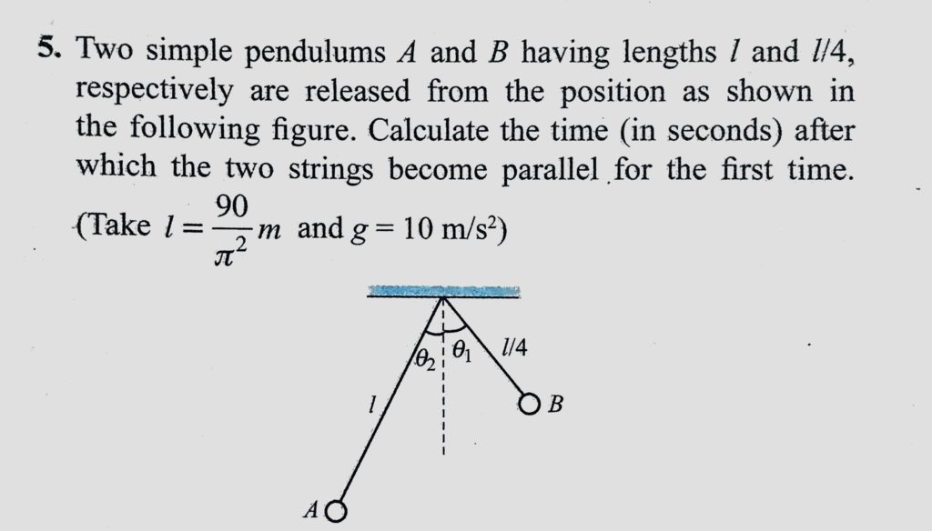 Two simple pendulums A and B having lengths l and l/4, respectively are released from the position as shown in the following figure. Calculate the time (in seconds) after which the respectively are released from the position as shown in the following figure. Calculate the time (in seconds) after which the Two simple pendulums A and B having lengths l and l/4 October 31, 2020 Category: Uncategorised (JEE Advanced Physics by BM Sharma + GMP Solutions) , Facebook Messenger WhatsApp Share this:TwitterFacebook Related
