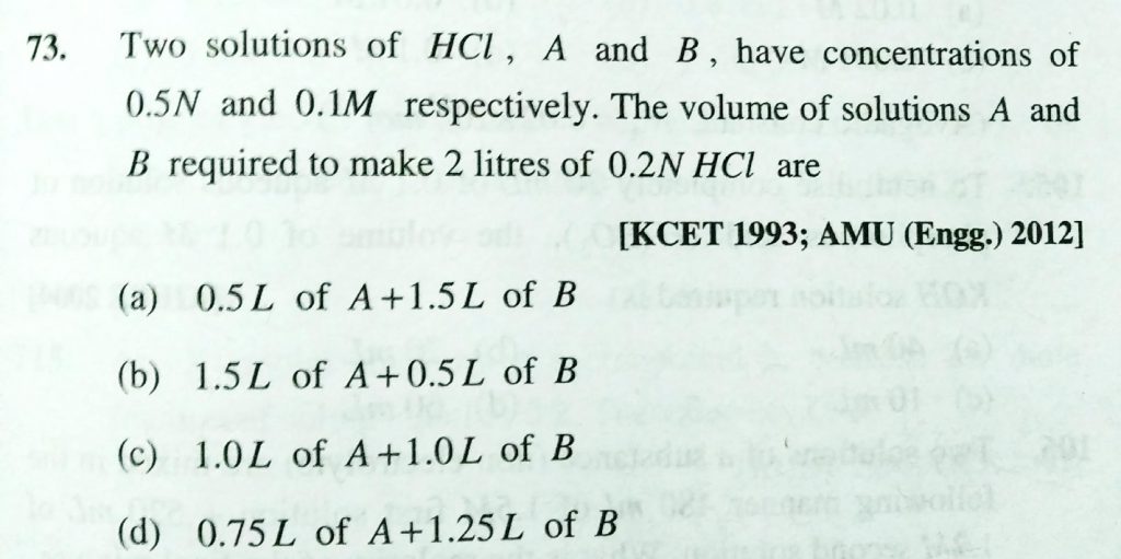 Two solutionn of HCL , A and B have concentrations of 0.5 N and 0.1 M respectively . THe volume of solutions A and B required to make 2 litres of 0.2 N HCl are A and B have concentrations of 0.5 N and 0.1 M respectively . THe volume of solutions A and B required to make 2 litres of 0.2 N HCl are Two solutionn of HCL December 11, 2020 Category: Uncategorised (JEE Advanced Physics by BM Sharma + GMP Solutions) , Facebook Messenger WhatsApp Share this:TwitterFacebook Related