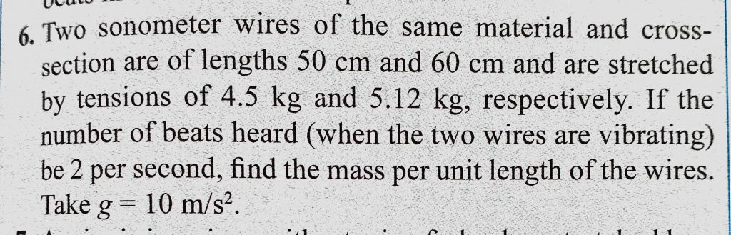 Two sonometer wires of the same material and cross-section are of lengths 50 cm and 60 cm and are stretched by tensions of 4.5 kg and 5.12 kg, respectively. If the number of beats respectively. If the number of beats Two sonometer wires of the same material and cross-section are of lengths 50 cm and 60 cm and are stretched by tensions of 4.5 kg and 5.12 kg November 5, 2020 Category: Uncategorised (JEE Advanced Physics by BM Sharma + GMP Solutions) , Facebook Messenger WhatsApp Share this:TwitterFacebook Related