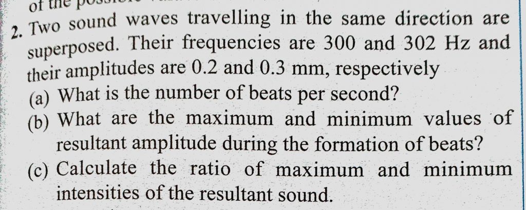 Two sound waves travelling in the same direction are superposed. Their frequencies are 300 and 302 Hz and their amplitudes are 0.2 and 0.3 mm, respectively (a) What is the number of beats per second? respectively (a) What is the number of beats per second? Two sound waves travelling in the same direction are superposed. Their frequencies are 300 and 302 Hz and their amplitudes are 0.2 and 0.3 mm November 5, 2020 Category: Uncategorised (JEE Advanced Physics by BM Sharma + GMP Solutions) , Facebook Messenger WhatsApp Share this:TwitterFacebook Related