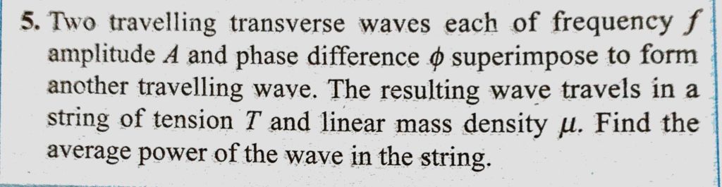 Two travelling transverse waves each of frequency f amplitude A and phase difference phi superimpose to form another travelling wave. The resulting wave travels in a string of tension Two travelling transverse waves each of frequency f amplitude A and phase difference phi superimpose to form another travelling wave. The resulting wave travels in a string of tension November 1, 2020 Category: Uncategorised (JEE Advanced Physics by BM Sharma + GMP Solutions) , Facebook Messenger WhatsApp Share this:TwitterFacebook Related