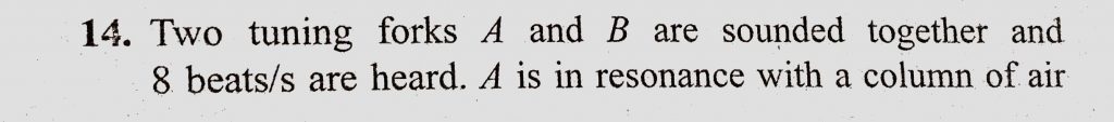 Two tuning forks A and B are sounded together and 8 beats/s are heard. A is in resonance with a column of air 32 cm long in a pipe closed at one end and B is similarly in resonance Two tuning forks A and B are sounded together and 8 beats/s are heard. A is in resonance with a column of air 32 cm long in a pipe closed at one end and B is similarly in resonance November 7, 2020 Category: Uncategorised (JEE Advanced Physics by BM Sharma + GMP Solutions) , Facebook Messenger WhatsApp Share this:TwitterFacebook Related