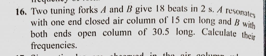 Two tuning forks A and B give 18 beats in 2 s. A resonates with one end closed air column of 15 cm long and B with both ends open column of 30.5 long. Calculate their frequencies. Two tuning forks A and B give 18 beats in 2 s. A resonates with one end closed air column of 15 cm long and B with both ends open column of 30.5 long. Calculate their frequencies. November 7, 2020 Category: Uncategorised (JEE Advanced Physics by BM Sharma + GMP Solutions) , Facebook Messenger WhatsApp Share this:TwitterFacebook Related