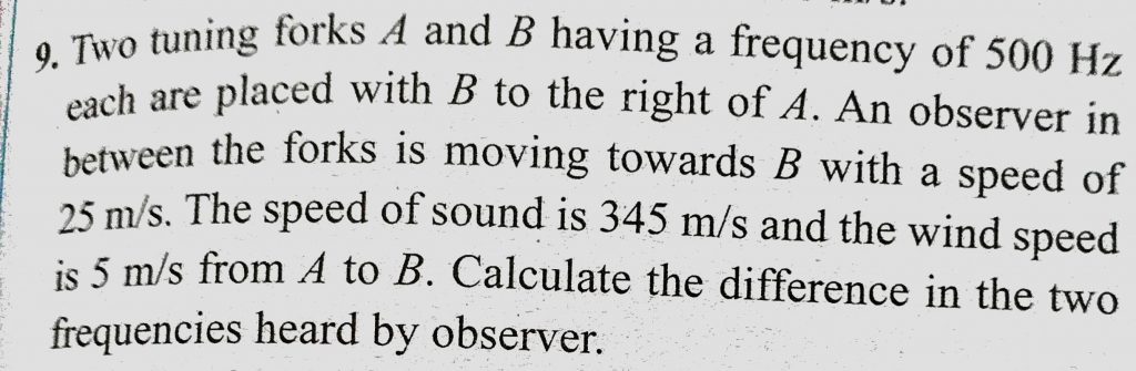 Two tuning forks A and B having a frequency of 500 Hz each are placed with B to the right of A. An observer in between the forks is moving towards B with a speed of 25 m/s. Two tuning forks A and B having a frequency of 500 Hz each are placed with B to the right of A. An observer in between the forks is moving towards B with a speed of 25 m/s. November 7, 2020 Category: Uncategorised (JEE Advanced Physics by BM Sharma + GMP Solutions) , Facebook Messenger WhatsApp Share this:TwitterFacebook Related