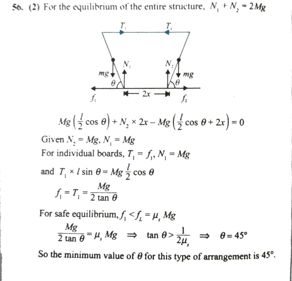 Two uniform boards, tied together with the help of a string, are balanced on a surface as shown in Fig. The coefficient of static friction between boards and surface is 0.5. The minimum value of θ, for which this type of arrangement is possible is are balanced on a surface as shown in Fig. The coefficient of static friction between boards and surface is 0.5. The minimum value of θ for which this type of arrangement is possible is tied together with the help of a string Two uniform boards September 26, 2020 Category: Uncategorised (JEE Advanced Physics by BM Sharma + GMP Solutions) , Facebook Messenger WhatsApp Share this:TwitterFacebook Related