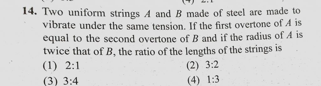 Two uniform strings A and B made of steel are made to vibrate under the same tension. If the first overtone of A is equal to the second overtone of B and if the radius of A is twice Two uniform strings A and B made of steel are made to vibrate under the same tension. If the first overtone of A is equal to the second overtone of B and if the radius of A is twice November 5, 2020 Category: Uncategorised (JEE Advanced Physics by BM Sharma + GMP Solutions) , Facebook Messenger WhatsApp Share this:TwitterFacebook Related