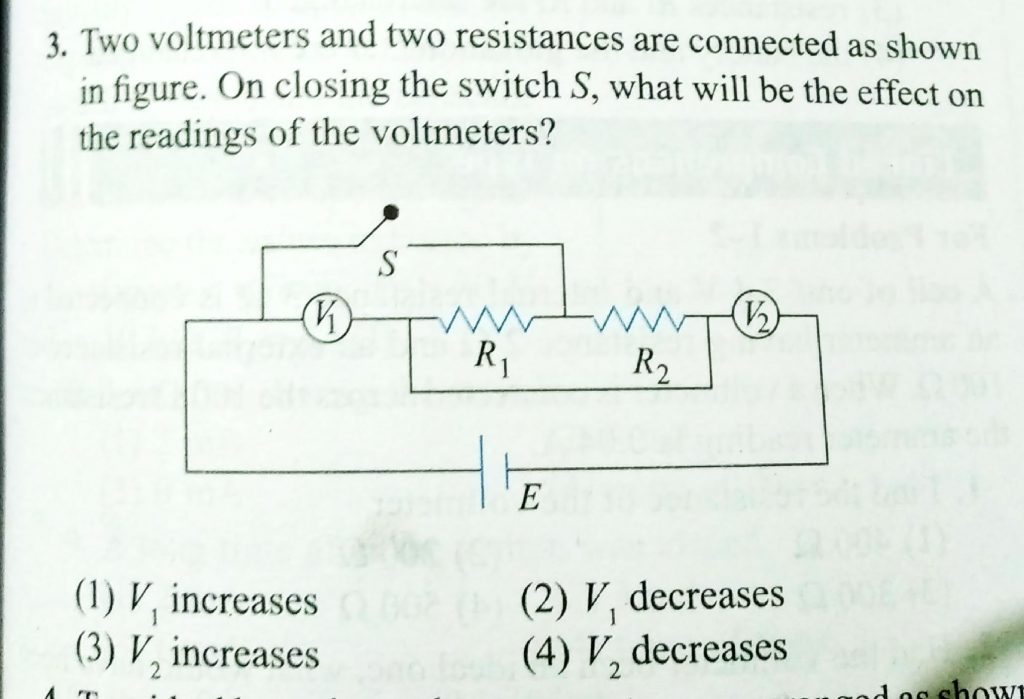 Two voltmeters and two resistances are connected as shown in figure. On closing the switch S, what will be the effect on the readings of the voltmeter ? Two voltmeters and two resistances are connected as shown in figure. On closing the switch S what will be the effect on the readings of the voltmeter ? November 15, 2020 Category: Uncategorised (JEE Advanced Physics by BM Sharma + GMP Solutions) , Facebook Messenger WhatsApp Share this:TwitterFacebook Related