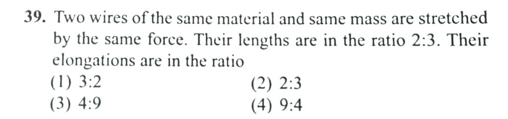 Two wires of the same material and same mass are stretched by the same force. Their length are in the ratio 2:3. Their elongations are in the ratio Two wires of the same material and same mass are stretched by the same force. Their length are in the ratio 2:3. Their elongations are in the ratio October 10, 2020 Category: Uncategorised (JEE Advanced Physics by BM Sharma + GMP Solutions) , Facebook Messenger WhatsApp Share this:TwitterFacebook Related