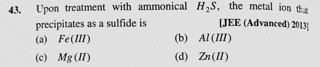Upon treatment with ammonical H2S, the metal ion that precipitates as a sulphide is the metal ion that precipitates as a sulphide is Upon treatment with ammonical H2S December 8, 2020 Category: Uncategorised (JEE Advanced Physics by BM Sharma + GMP Solutions) , Facebook Messenger WhatsApp Share this:TwitterFacebook Related