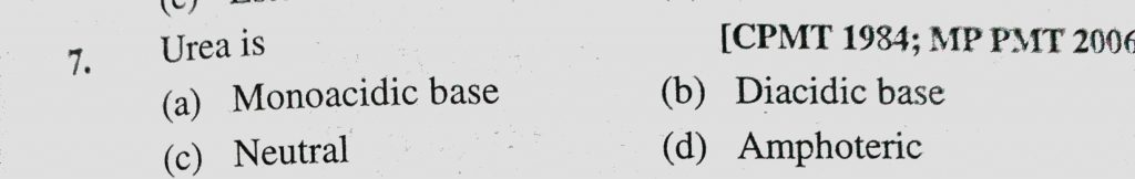 Urea is (a) Monoacidic base (b) Diacidic base (c) Neutral (d) Amphoteric Urea is (a) Monoacidic base (b) Diacidic base (c) Neutral (d) Amphoteric February 12, 2021 Category: Uncategorised (JEE Advanced Physics by BM Sharma + GMP Solutions) , Facebook Messenger WhatsApp Share this:TwitterFacebook Related