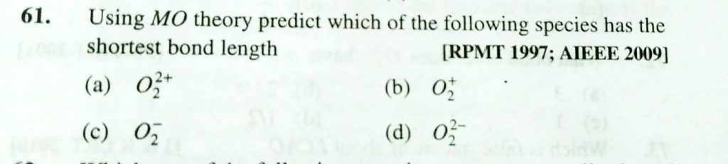Using MO theory predict which of the following species has the shortest bond length Using MO theory predict which of the following species has the shortest bond length December 8, 2020 Category: Uncategorised (JEE Advanced Physics by BM Sharma + GMP Solutions) , Facebook Messenger WhatsApp Share this:TwitterFacebook Related