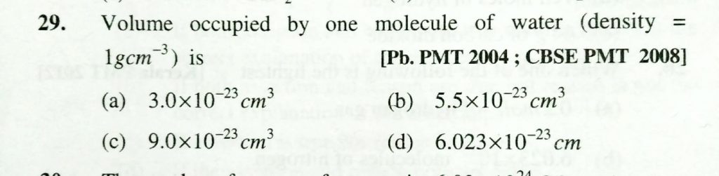 Volume occupied by one molecule of water ( density = 1gm/cm^3 )is Volume occupied by one molecule of water ( density = 1gm/cm^3 )is November 22, 2020 Category: Uncategorised (JEE Advanced Physics by BM Sharma + GMP Solutions) , Facebook Messenger WhatsApp Share this:TwitterFacebook Related