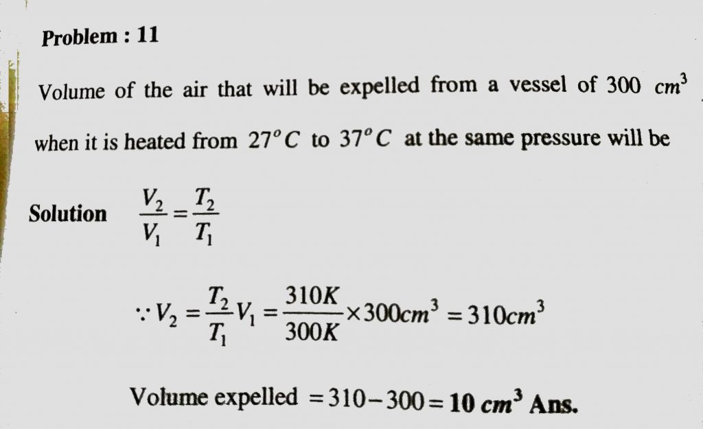 Volume of the air that will be expelled from a vessel of 300 cm^3 when it is heated from 27 degree C to 37 degree C at the same pressure will be Volume of the air that will be expelled from a vessel of 300 cm^3 when it is heated from 27 degree C to 37 degree C at the same pressure will be February 12, 2021 Category: Uncategorised (JEE Advanced Physics by BM Sharma + GMP Solutions) , Facebook Messenger WhatsApp Share this:TwitterFacebook Related