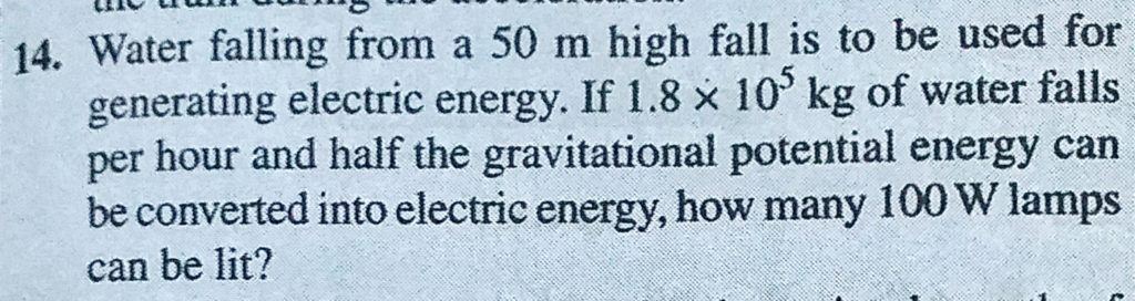 Water falling from a 50 m high fall is to be used for generating electricity energy. If 1.8 * 10^5 kg of water falls per hour and half the gravitational potential energy can be converted into electric Water falling from a 50 m high fall is to be used for generating electricity energy. If 1.8 * 10^5 kg of water falls per hour and half the gravitational potential energy can be converted into electric October 3, 2020 Category: Uncategorised (JEE Advanced Physics by BM Sharma + GMP Solutions) , Facebook Messenger WhatsApp Share this:TwitterFacebook Related