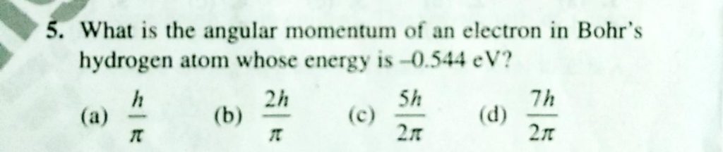 What is the angular momentum of an electron in Bohr’s hydrogen atom whose energy is -0.544 eV? What is the angular momentum of an electron in Bohr's hydrogen atom whose energy is -0.544 eV? September 13, 2020 Category: Uncategorised (JEE Advanced Physics by BM Sharma + GMP Solutions) , Facebook Messenger WhatsApp Share this:TwitterFacebook Related