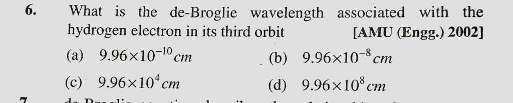 What is the de – Broglie wavelength associated with the hydrogen electron in its third orbit What is the de - Broglie wavelength associated with the hydrogen electron in its third orbit November 27, 2020 Category: Uncategorised (JEE Advanced Physics by BM Sharma + GMP Solutions) , Facebook Messenger WhatsApp Share this:TwitterFacebook Related