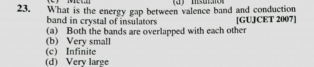 What is the energy gap between valence band and conduction band in crystal of insulators What is the energy gap between valence band and conduction band in crystal of insulators December 17, 2020 Category: Uncategorised (JEE Advanced Physics by BM Sharma + GMP Solutions) , Facebook Messenger WhatsApp Share this:TwitterFacebook Related