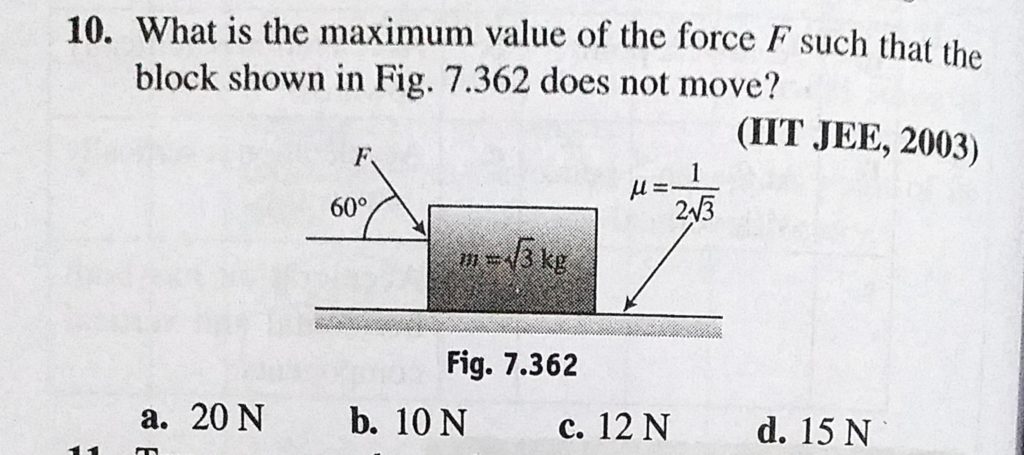 What is the maximum value of the force F such that the block shown in Fig. 7.362 does not move? What is the maximum value of the force F such that the block shown in Fig. 7.362 does not move? October 2, 2020 Category: Uncategorised (JEE Advanced Physics by BM Sharma + GMP Solutions) , Facebook Messenger WhatsApp Share this:TwitterFacebook Related