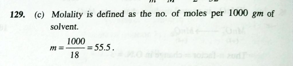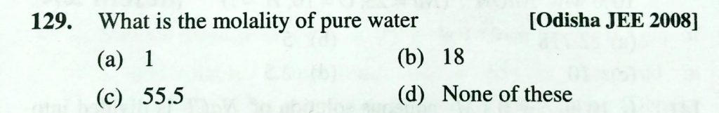 What is the molality of pure water (a) 1 (b) 18 (c) 55.5 (d) none of these What is the molality of pure water (a) 1 (b) 18 (c) 55.5 (d) none of these December 12, 2020 Category: Uncategorised (JEE Advanced Physics by BM Sharma + GMP Solutions) , Facebook Messenger WhatsApp Share this:TwitterFacebook Related