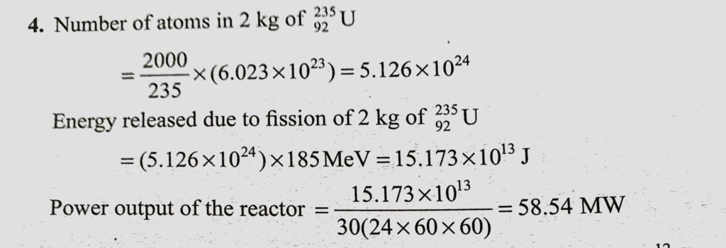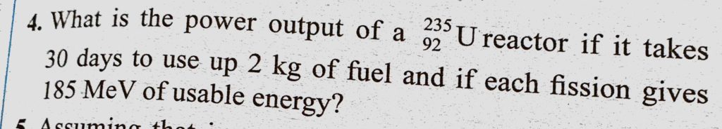 What is the power output of a 235U92 reactor if it takes 30 days to use up 2 kg of fuel and if each fission gives 185 MeV of usable energy ? What is the power output of a 235U92 reactor if it takes 30 days to use up 2 kg of fuel and if each fission gives 185 MeV of usable energy ? October 17, 2020 Category: Uncategorised (JEE Advanced Physics by BM Sharma + GMP Solutions) , Facebook Messenger WhatsApp Share this:TwitterFacebook Related