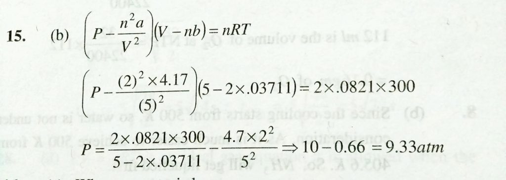 What is the pressure of 2 mole of NH3 at 27 degree C when its volume is 5 litre in Vander Waal’s equation (a = 4.17 , b = 0.03711 ) b = 0.03711 ) What is the pressure of 2 mole of NH3 at 27 degree C when its volume is 5 litre in Vander Waal's equation (a = 4.17 February 12, 2021 Category: Uncategorised (JEE Advanced Physics by BM Sharma + GMP Solutions) , Facebook Messenger WhatsApp Share this:TwitterFacebook Related