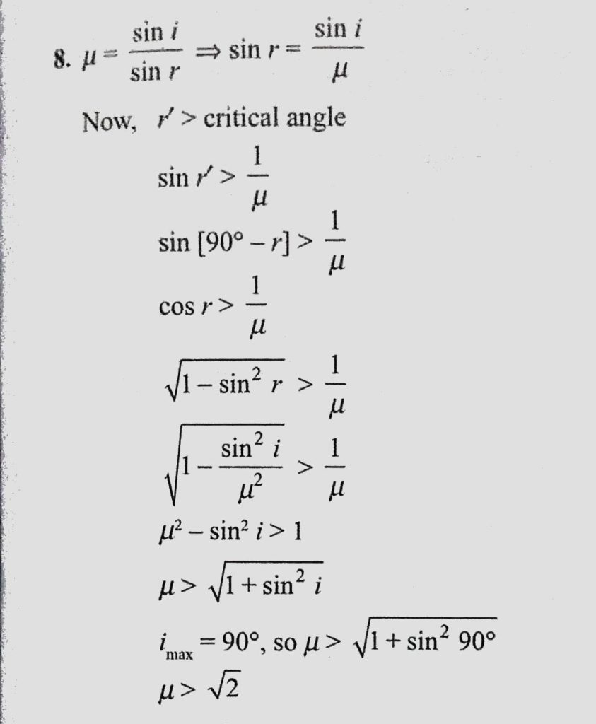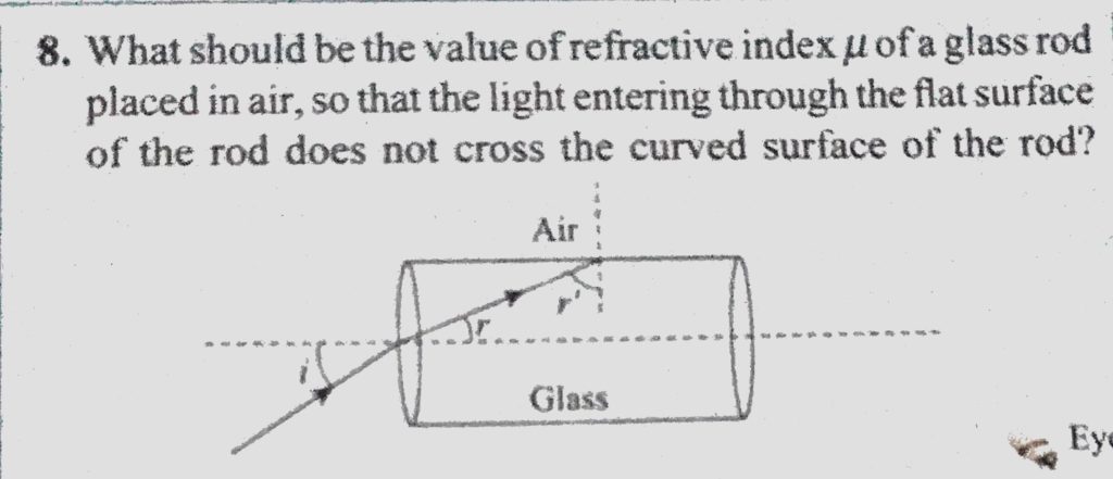 What should be the value of refractive index mu of a glass rod placed in air, so that the light entering through the flat surface of the rod does not cross the curved surface of the rod? so that the light entering through the flat surface of the rod does not cross the curved surface of the rod? What should be the value of refractive index mu of a glass rod placed in air October 5, 2020 Category: Uncategorised (JEE Advanced Physics by BM Sharma + GMP Solutions) , Facebook Messenger WhatsApp Share this:TwitterFacebook Related