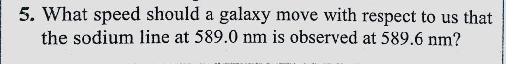What speed should a galaxy move with respect to us that the sodium line at 589.0 nm is observed at 589.6 nm? What speed should a galaxy move with respect to us that the sodium line at 589.0 nm is observed at 589.6 nm? October 11, 2020 Category: Uncategorised (JEE Advanced Physics by BM Sharma + GMP Solutions) , Facebook Messenger WhatsApp Share this:TwitterFacebook Related
