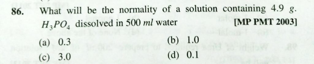 What will be the normality of a solution containing 4.9 g . H3PO4 dissolved in 500 ml water What will be the normality of a solution containing 4.9 g . H3PO4 dissolved in 500 ml water December 12, 2020 Category: Uncategorised (JEE Advanced Physics by BM Sharma + GMP Solutions) , Facebook Messenger WhatsApp Share this:TwitterFacebook Related