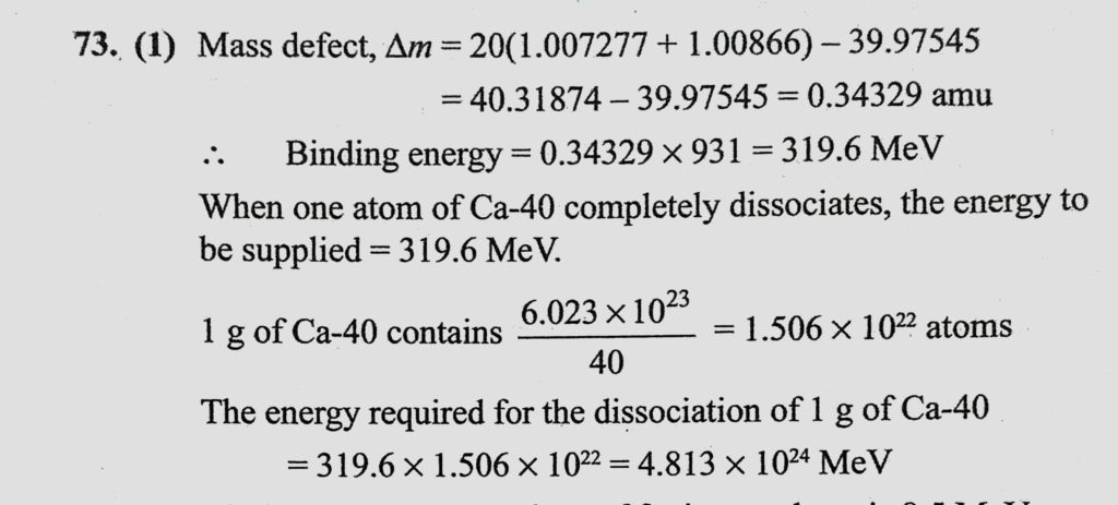 What would be the energy required to dissociate completely 1 g of Ca-40 into its constituent particles ? Given: Mass of proton = 1.007277 amu, Mass of neutron = 1.00866 amu Mass of neutron = 1.00866 amu What would be the energy required to dissociate completely 1 g of Ca-40 into its constituent particles ? Given: Mass of proton = 1.007277 amu October 18, 2020 Category: Uncategorised (JEE Advanced Physics by BM Sharma + GMP Solutions) , Facebook Messenger WhatsApp Share this:TwitterFacebook Related