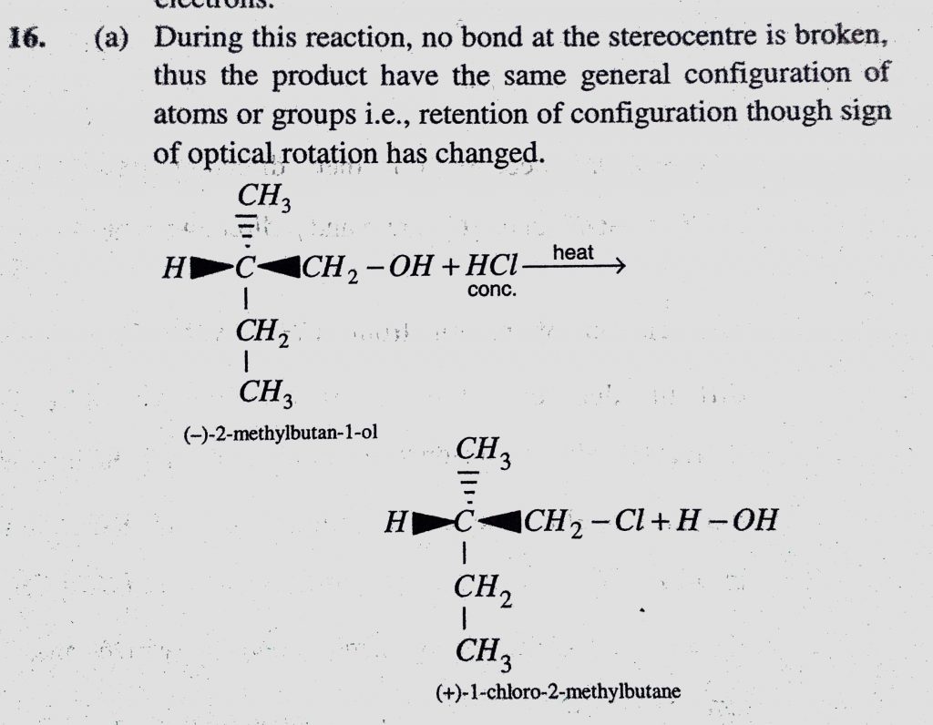 When (-)-2-methylbutan-1-ol is heated with concentrated hydrochloric acid, (+)1-chloro-2-methylbutane is obtained. The reaction is an example of (a) Retention (b) Inversion (+)1-chloro-2-methylbutane is obtained. The reaction is an example of (a) Retention (b) Inversion When (-)-2-methylbutan-1-ol is heated with concentrated hydrochloric acid December 11, 2020 Category: Uncategorised (JEE Advanced Physics by BM Sharma + GMP Solutions) , Facebook Messenger WhatsApp Share this:TwitterFacebook Related