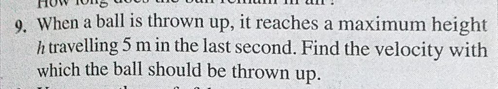 When a ball is thrown up, it reaches a maximum height h travelling 5 m in the last second. Find the velocity with which the ball should be thrown up. it reaches a maximum height h travelling 5 m in the last second. Find the velocity with which the ball should be thrown up. When a ball is thrown up September 18, 2020 Category: Uncategorised (JEE Advanced Physics by BM Sharma + GMP Solutions) , Facebook Messenger WhatsApp Share this:TwitterFacebook Related