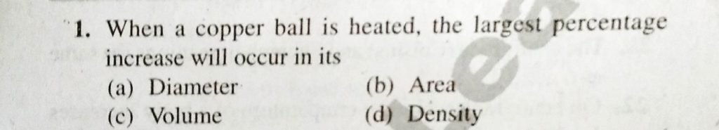 When a copper ball is heated, the largest percentage increases will occur in its the largest percentage increases will occur in its When a copper ball is heated October 3, 2020 Category: Uncategorised (JEE Advanced Physics by BM Sharma + GMP Solutions) , Facebook Messenger WhatsApp Share this:TwitterFacebook Related