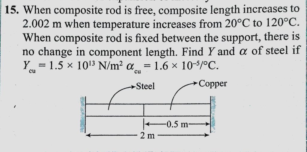 When composite rod is free, composite length increases to 2.002 m when temperature increases from 20 C to 120 C. When composite rod is fixed between the support, there is no change composite length increases to 2.002 m when temperature increases from 20 C to 120 C. When composite rod is fixed between the support there is no change When composite rod is free October 23, 2020 Category: Uncategorised (JEE Advanced Physics by BM Sharma + GMP Solutions) , Facebook Messenger WhatsApp Share this:TwitterFacebook Related