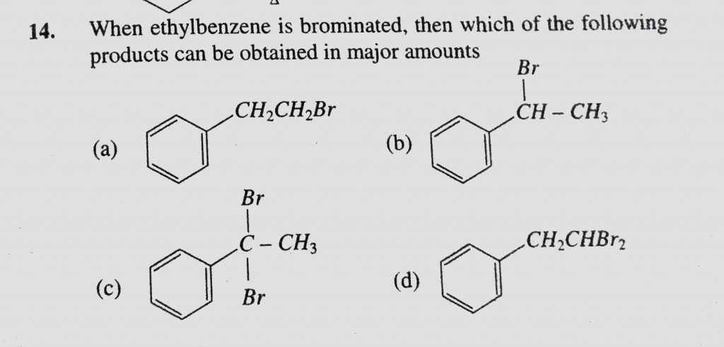 When ethylbenzene is brominated, then which of the following products can be obtained in major amounts then which of the following products can be obtained in major amounts When ethylbenzene is brominated December 16, 2020 Category: Uncategorised (JEE Advanced Physics by BM Sharma + GMP Solutions) , Facebook Messenger WhatsApp Share this:TwitterFacebook Related