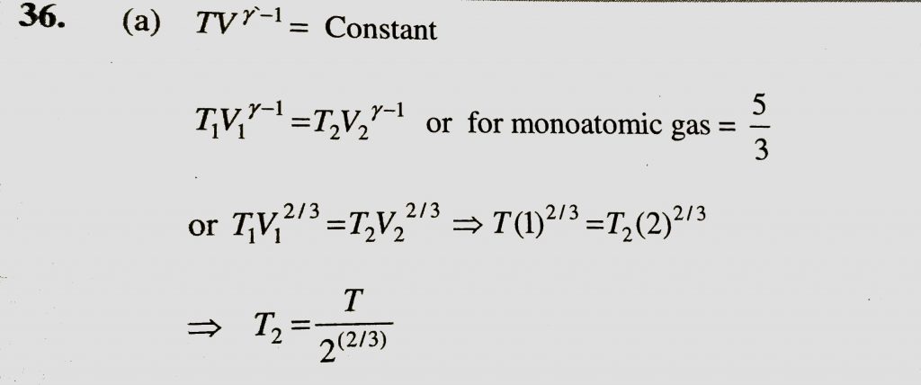 When one mole of monoatomic ideal gas at T K undergoes adiabatic change under a constant external pressure of 1 atm changes volume from 1 litre to 2 litre . The final temperature in Kelvin would be When one mole of monoatomic ideal gas at T K undergoes adiabatic change under a constant external pressure of 1 atm changes volume from 1 litre to 2 litre . The final temperature in Kelvin would be February 12, 2021 Category: Uncategorised (JEE Advanced Physics by BM Sharma + GMP Solutions) , Facebook Messenger WhatsApp Share this:TwitterFacebook Related