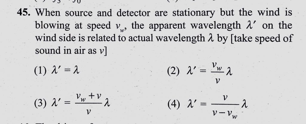 When source and detector are stationary but the wind is blowing at speed vw, the apparent wavelength lemda’ on the wind side is related to actual wavelength lemda by the apparent wavelength lemda' on the wind side is related to actual wavelength lemda by When source and detector are stationary but the wind is blowing at speed vw November 7, 2020 Category: Uncategorised (JEE Advanced Physics by BM Sharma + GMP Solutions) , Facebook Messenger WhatsApp Share this:TwitterFacebook Related