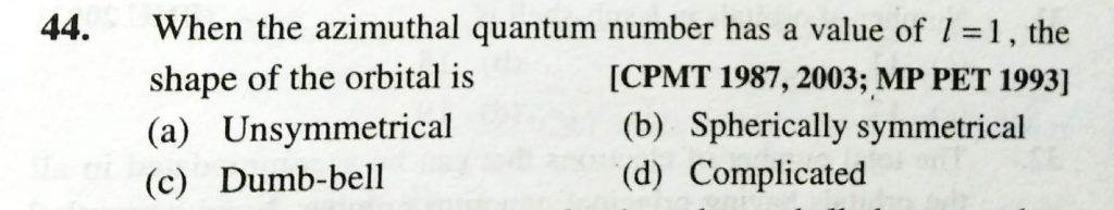 When the azimuthual quantum number has a value of l = 1 ,, the shape of the oribtal is the shape of the oribtal is When the azimuthual quantum number has a value of l = 1 November 28, 2020 Category: Uncategorised (JEE Advanced Physics by BM Sharma + GMP Solutions) , Facebook Messenger WhatsApp Share this:TwitterFacebook Related
