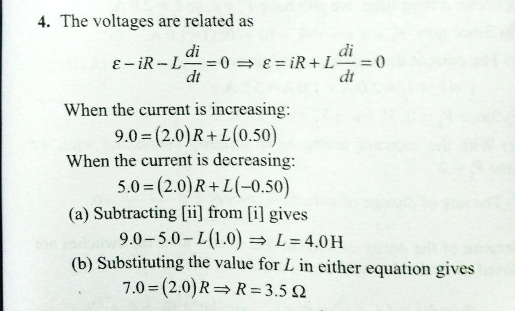 When the current in the portion of the circuit shown in the figure is 2 A and increasing at the rate of 5 A/s, then the measured potential voltage is delta Vab = 9 V. when the current is 2 A and decreases at the rate of 5 A/s , the measured voltage is delta Vab = 5 V. calculate The values of R and L